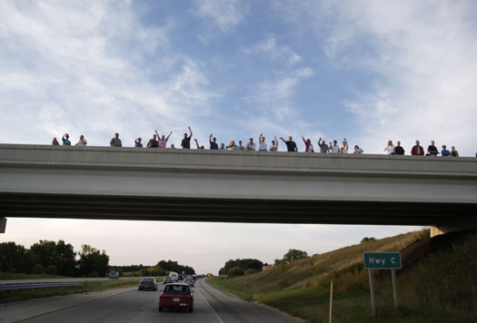 People waving from overpasses in Milwaukee |